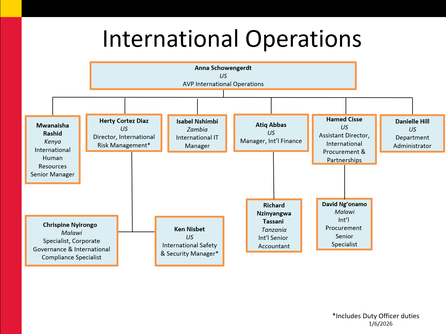 Organization Chart for the International Operations Department